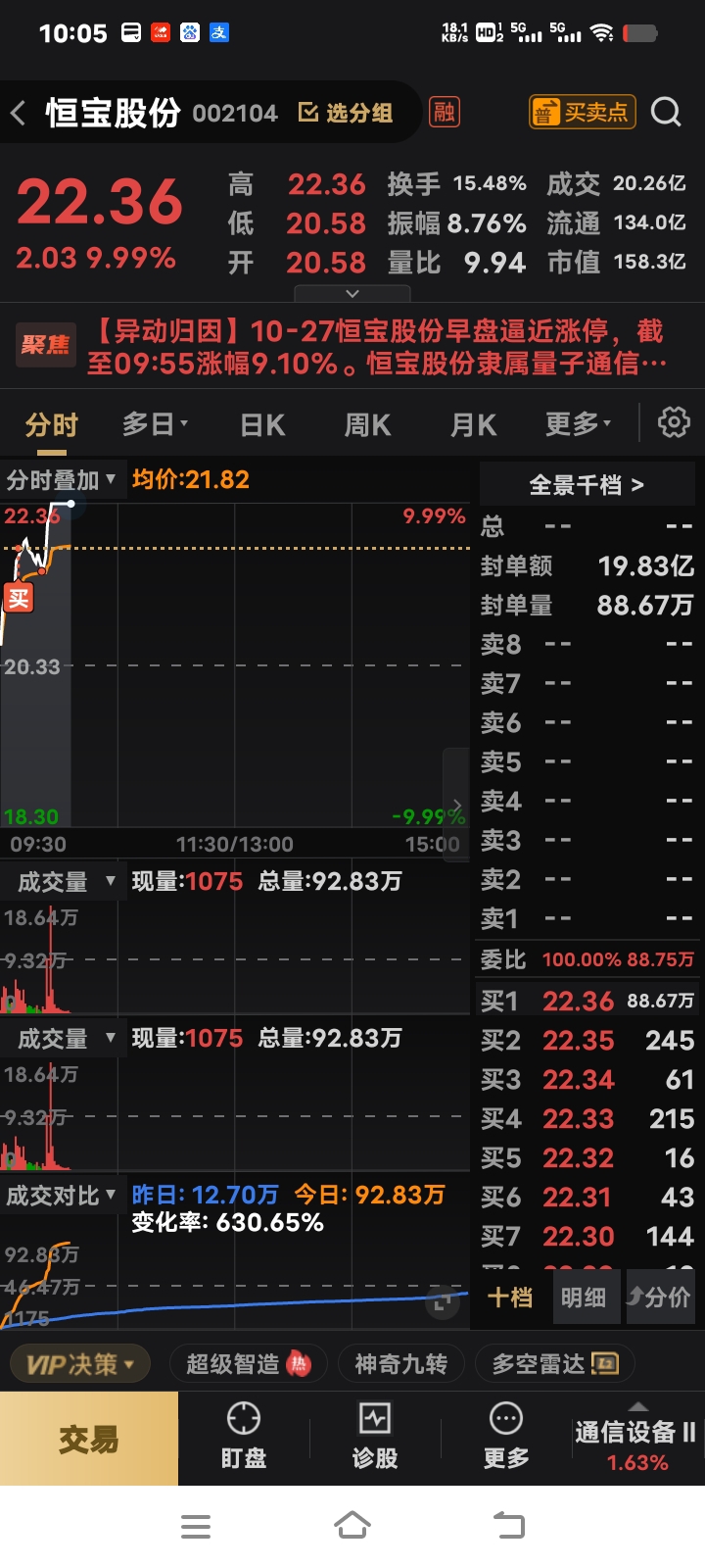 $恒宝股份(SZ002104)$ 这一波力度有多强呢,这么说吧,平时我只会分仓,这次上杠杆也要打入,积蓄已久的力量,不会再预测有几个板了,只能说天空才是尽头,老龙回归