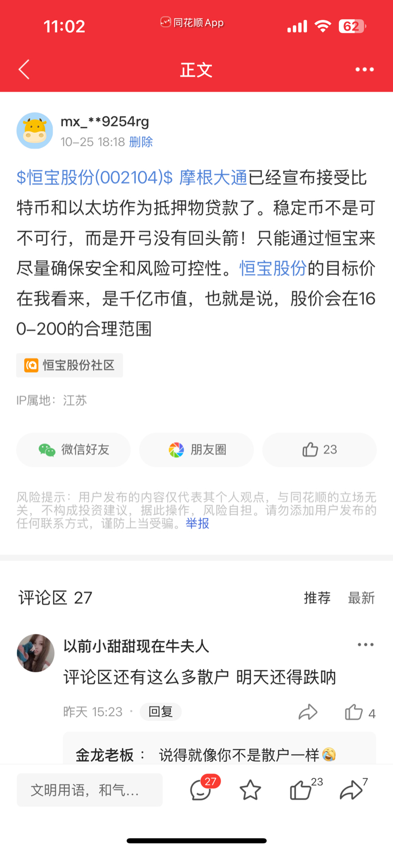 $恒宝股份(SZ002104)$ 同花的大神给我力量。冲冲冲!恒宝向着千亿实质迈进第一步