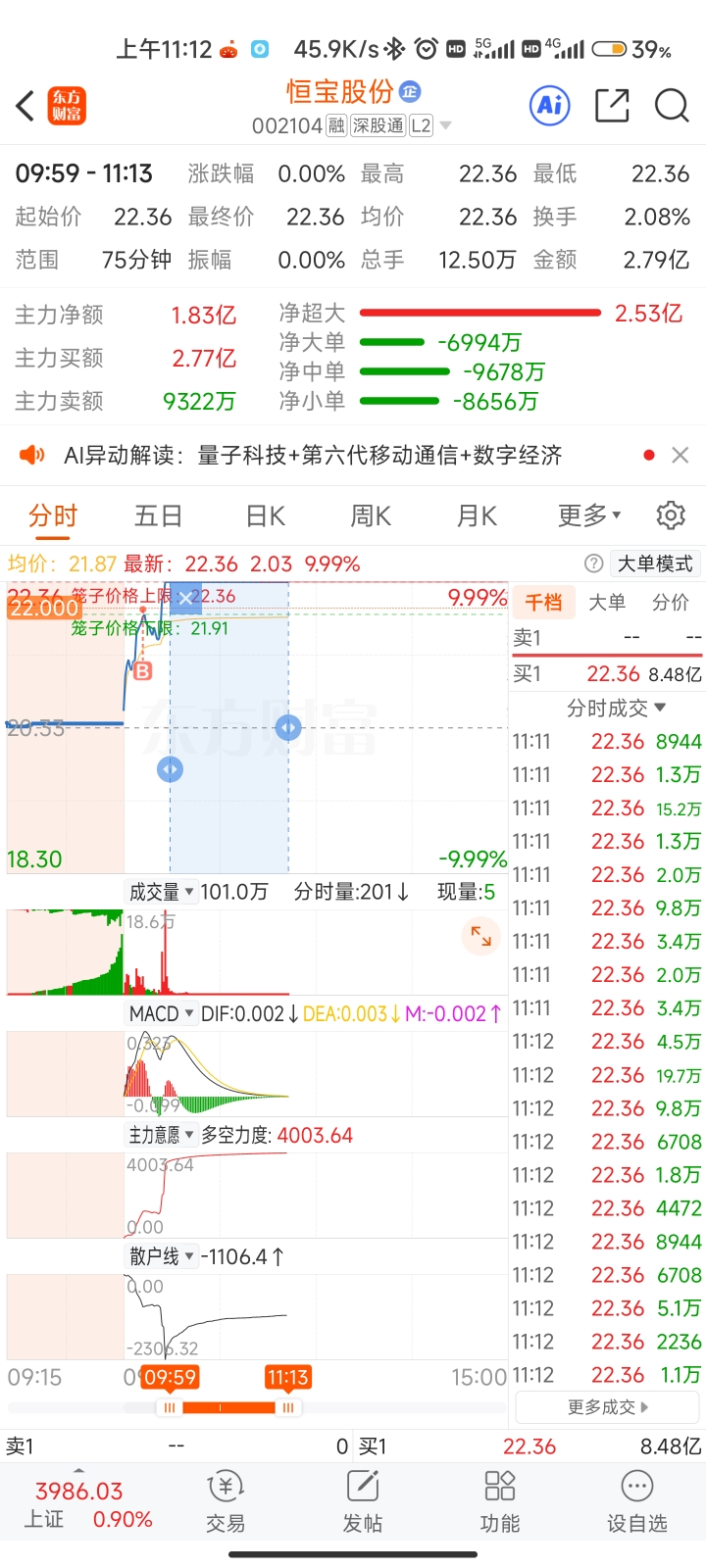 $恒宝股份(SZ002104)$ 不会开了,一上午就成交了两亿