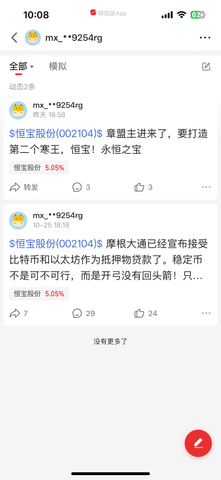 $恒宝股份(SZ002104)$ 同花顺MX大神给了定心丸。永恒之宝。