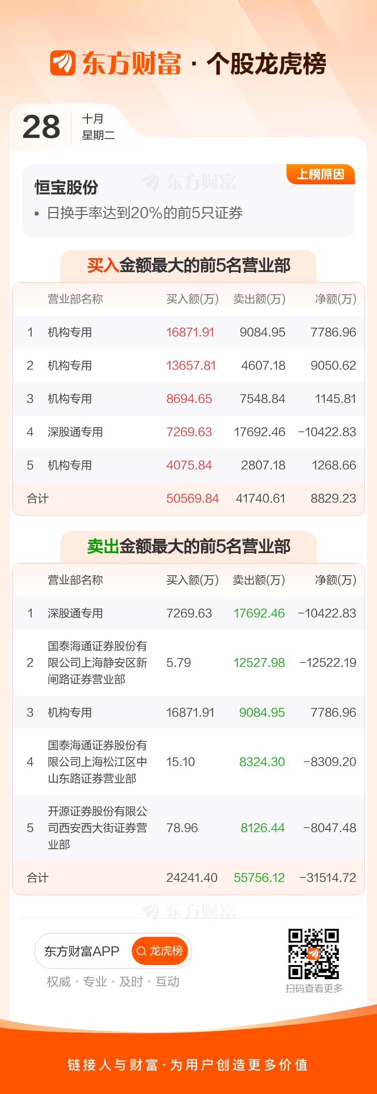 恒宝股份(002104)龙虎榜数据(10-28)