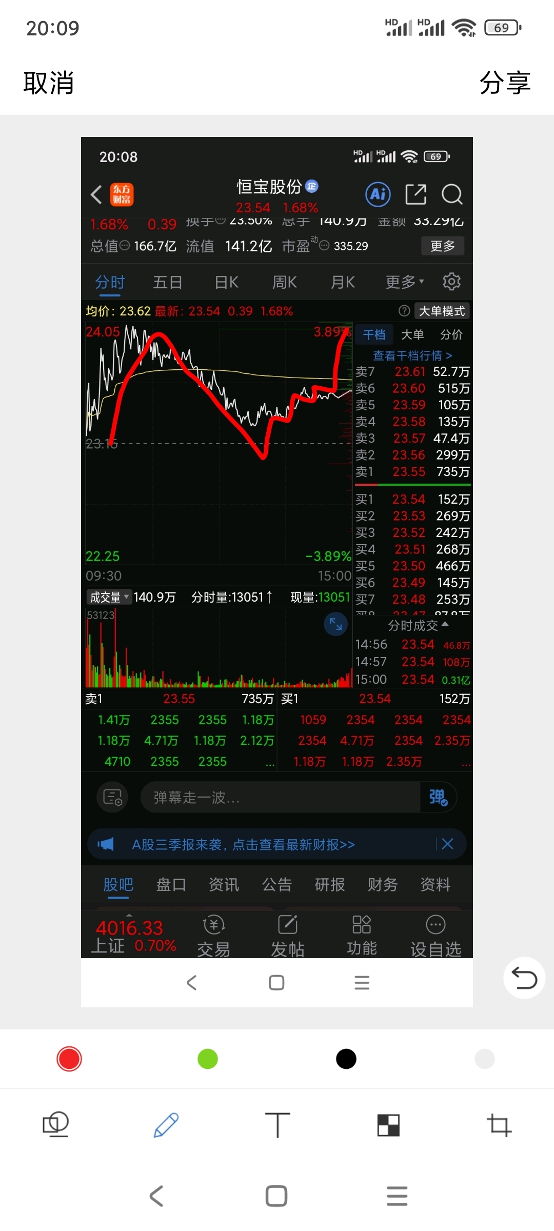 $恒宝股份(SZ002104)$ 今天的恒宝应该这个走势破2400.实属不该走成这个样子,明天业绩爆表破25冲26吧