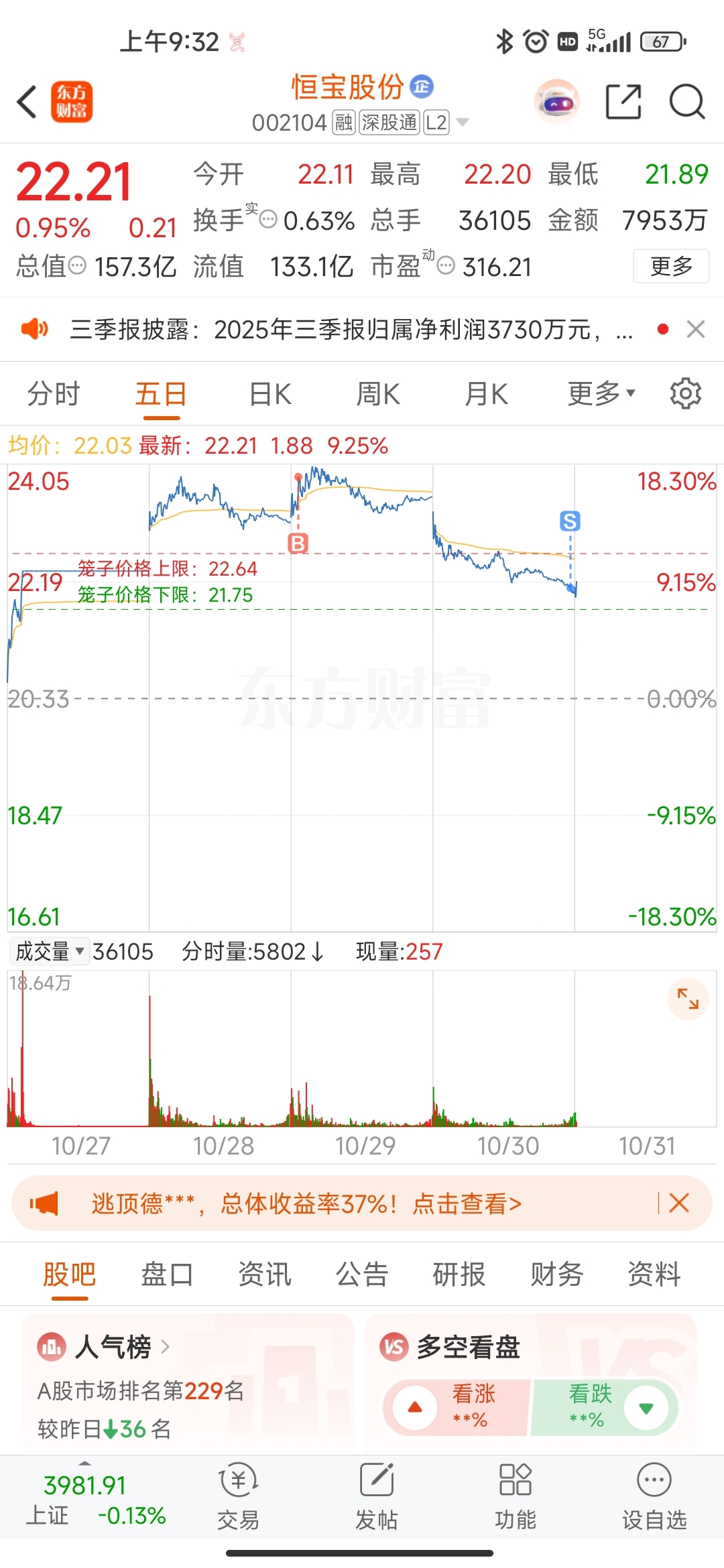 $恒宝股份(SZ002104)$ 最高买最低卖,我真TM天才