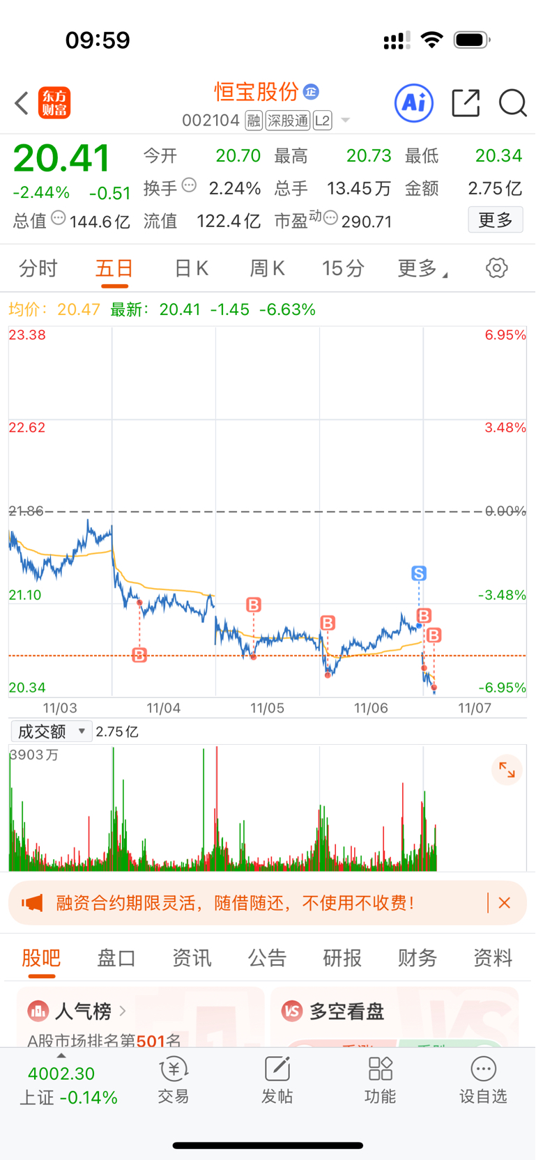 $恒宝股份(SZ002104)$ 继续,甩不掉我