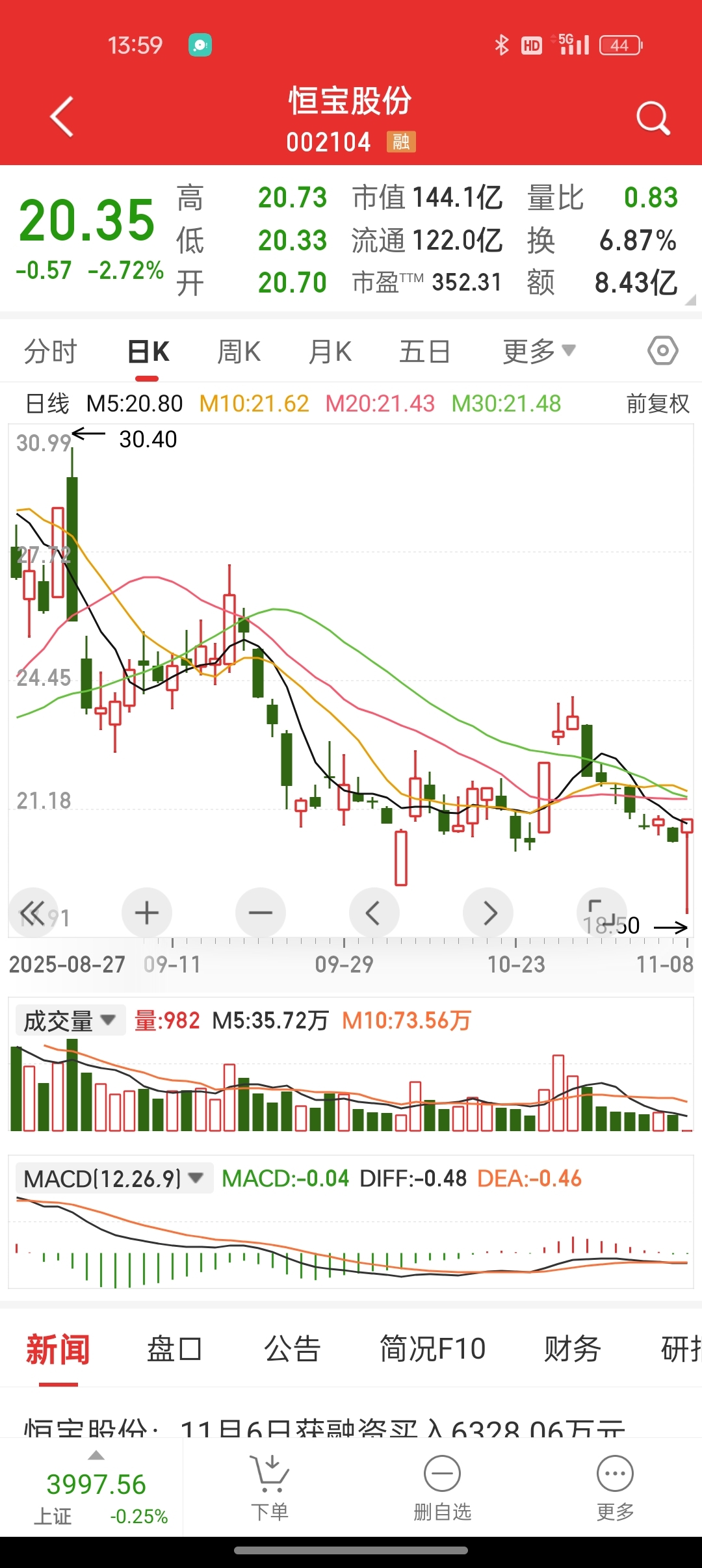 $恒宝股份(SZ002104)$ 大胆预测明日走势,不构成操作建议