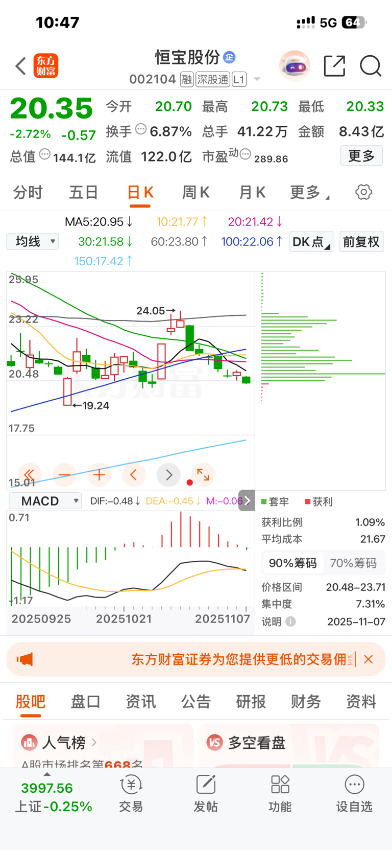 $恒宝股份(SZ002104)$ 上峰不移调整不止,就等你们割肉