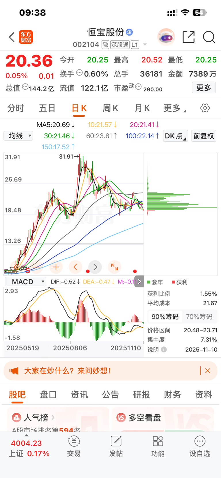 $恒宝股份(SZ002104)$ 你不是韭菜你是啥?高位孤零零的站着吧你就