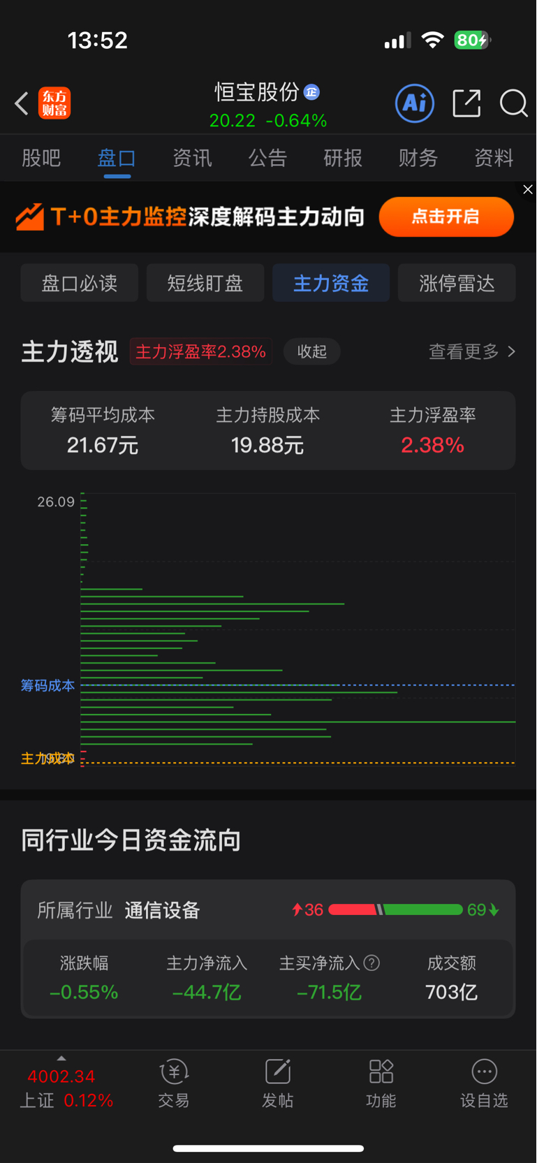 $恒宝股份(SZ002104)$ 主力还盈利,还会跌的