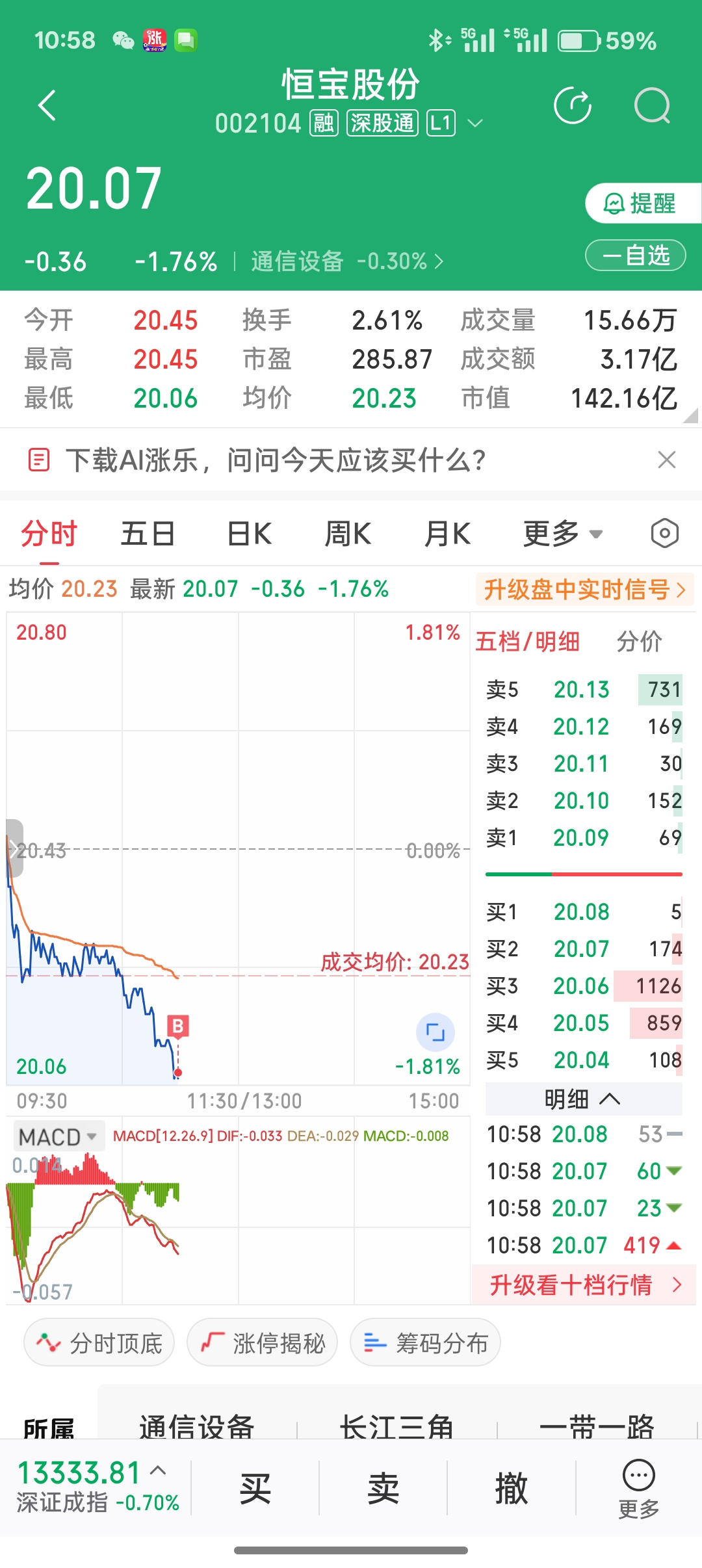 $恒宝股份(SZ002104)$ 跌破20梭哈