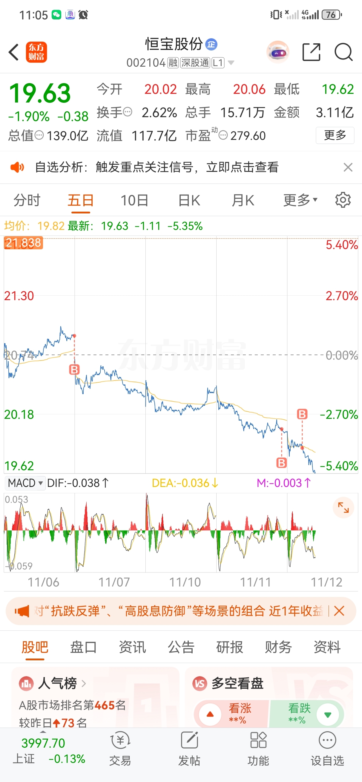 $恒宝股份(SZ002104)$ 跌,使劲跌,不跌看不起