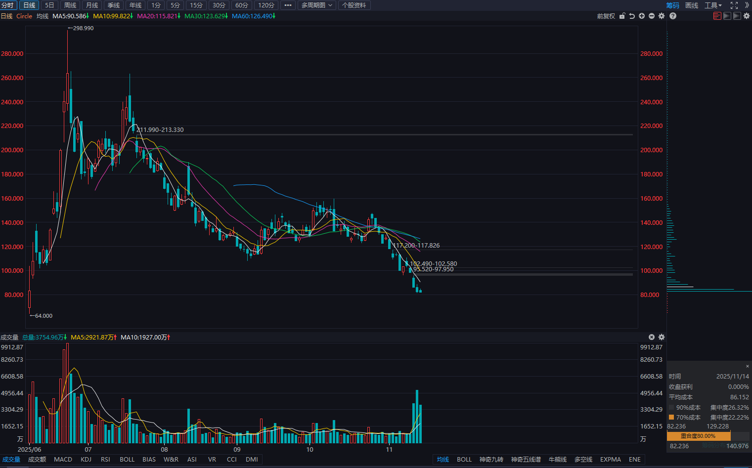 这是稳定币第一股的尴尬境遇,日线红利盘0%,连续放量三天下跌!
