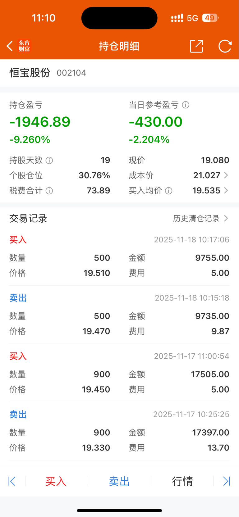 $恒宝股份(SZ002104)$ 一千股亏我2k牛