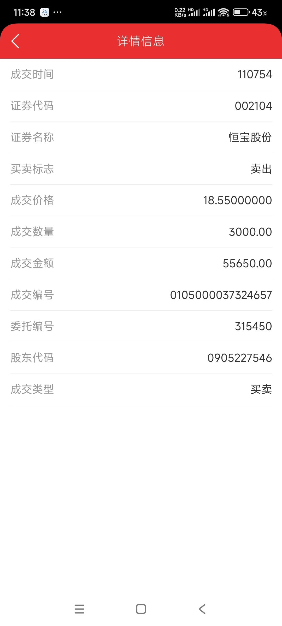 $恒宝股份(SZ002104)$ 昨天18.71元,18.68元,18.54元买进的,今天清仓了,结果你给我拉到了18.65元