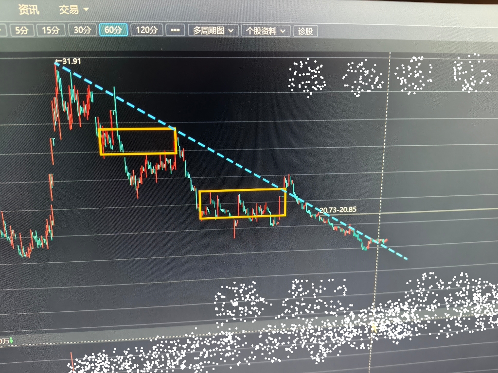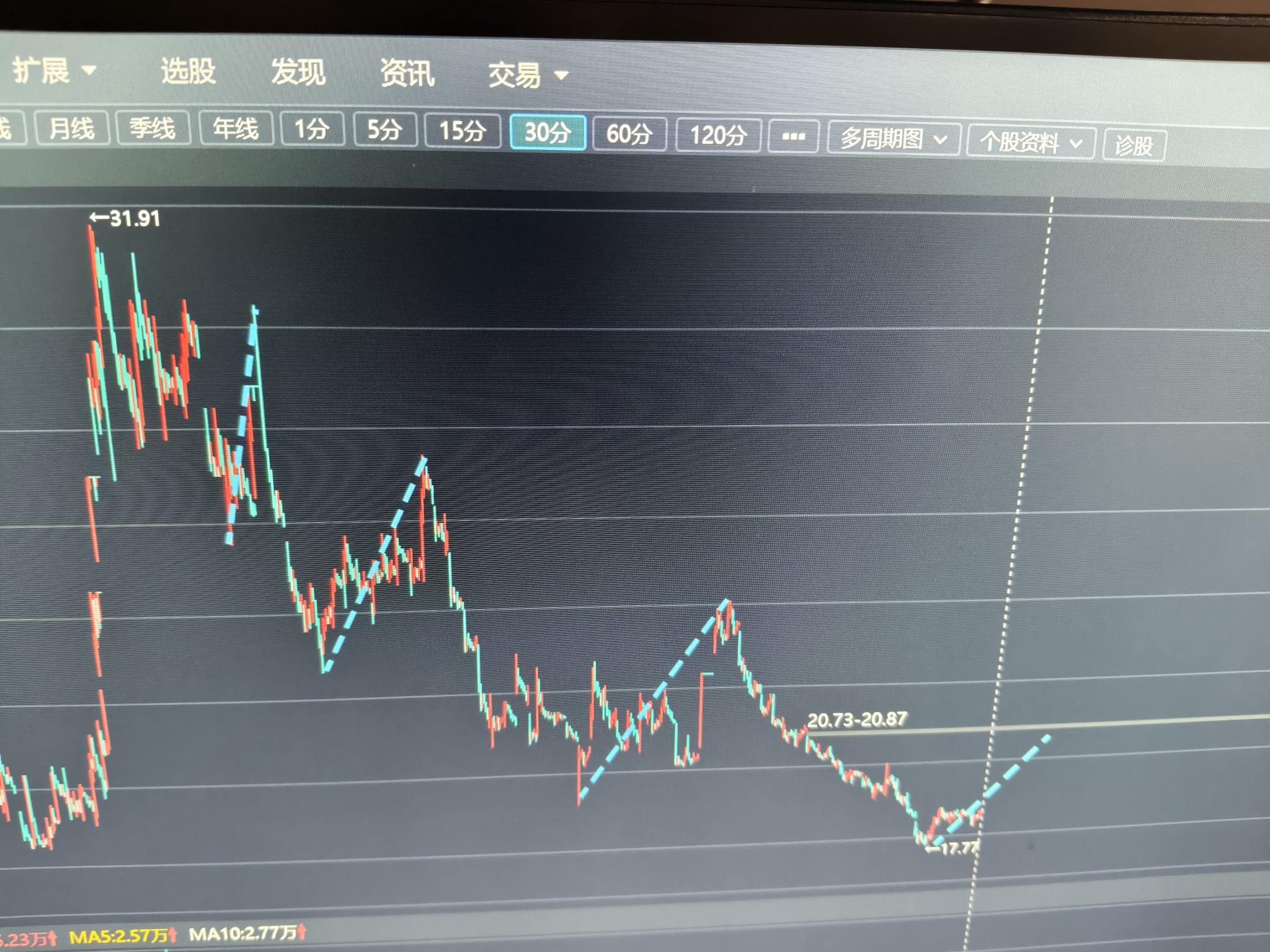 30分钟图本来给个反抽没问题,但周一大盘最后一拉,而后大盘接着跌所以60f给个3
