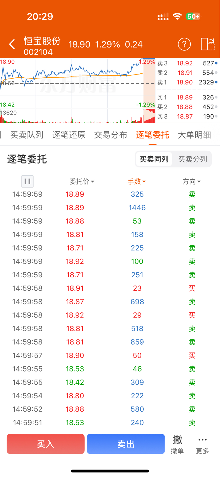$恒宝股份(SZ002104)$ 竞价最后10秒大单跑的真多