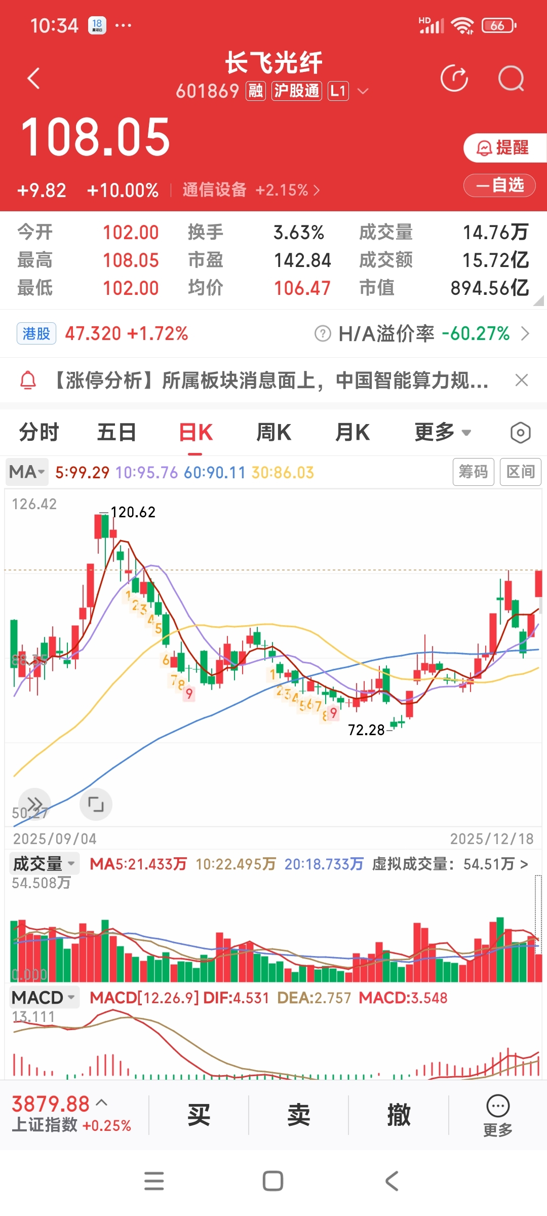 板块通信设备长飞108元2连板涨停,恒宝算是废龙一条!
