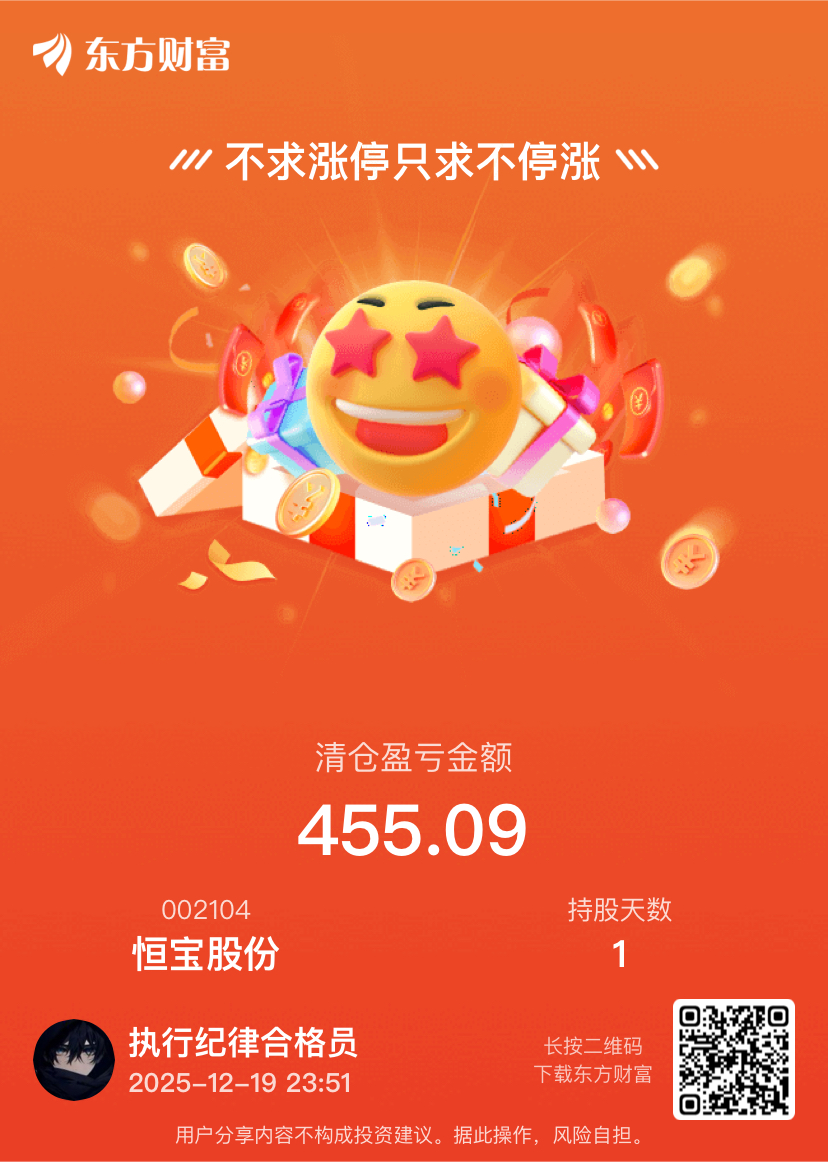 $恒宝股份(SZ002104)$ 感谢今年进了三次,亏了两次中午终于让我这次赚了点走了