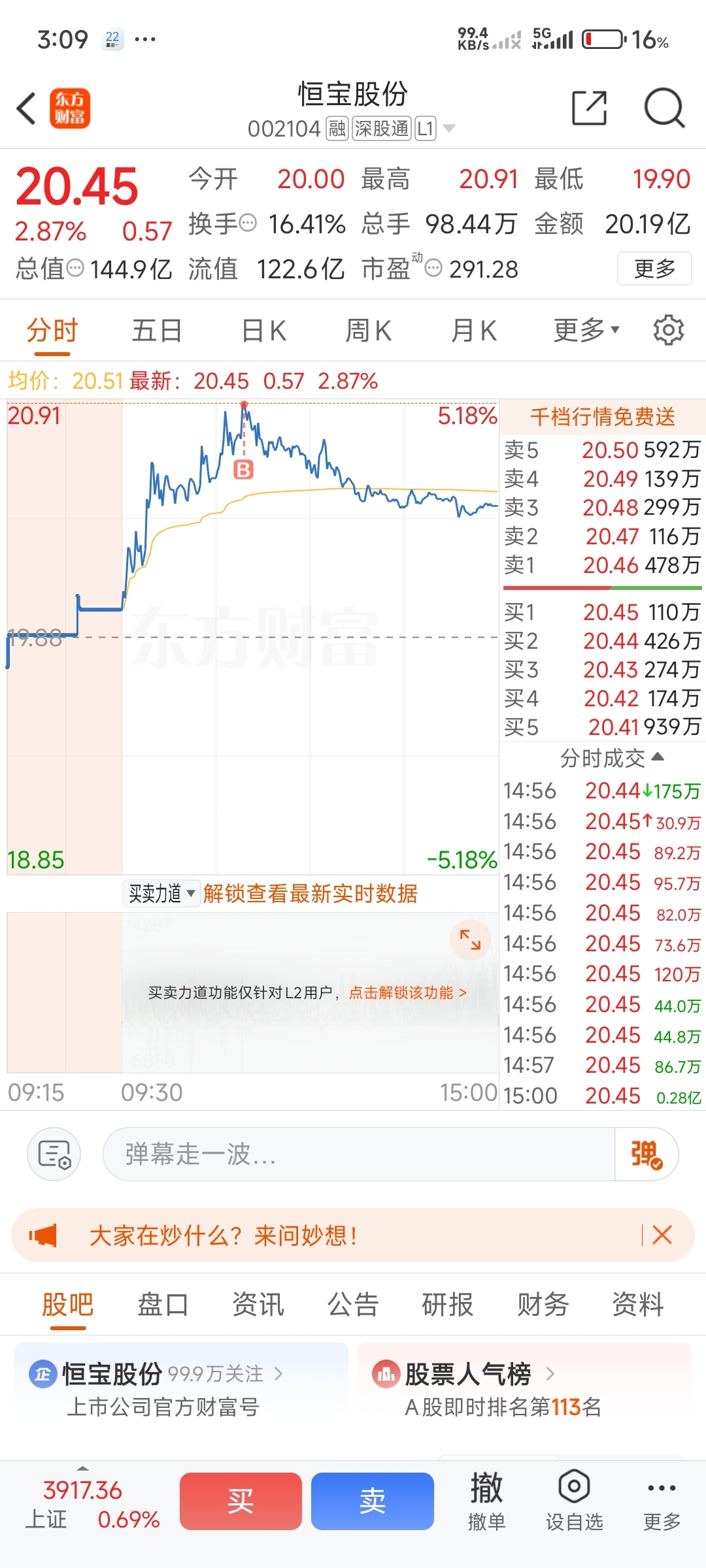 $恒宝股份(SZ002104)$ 不是最高点我不买 就是割