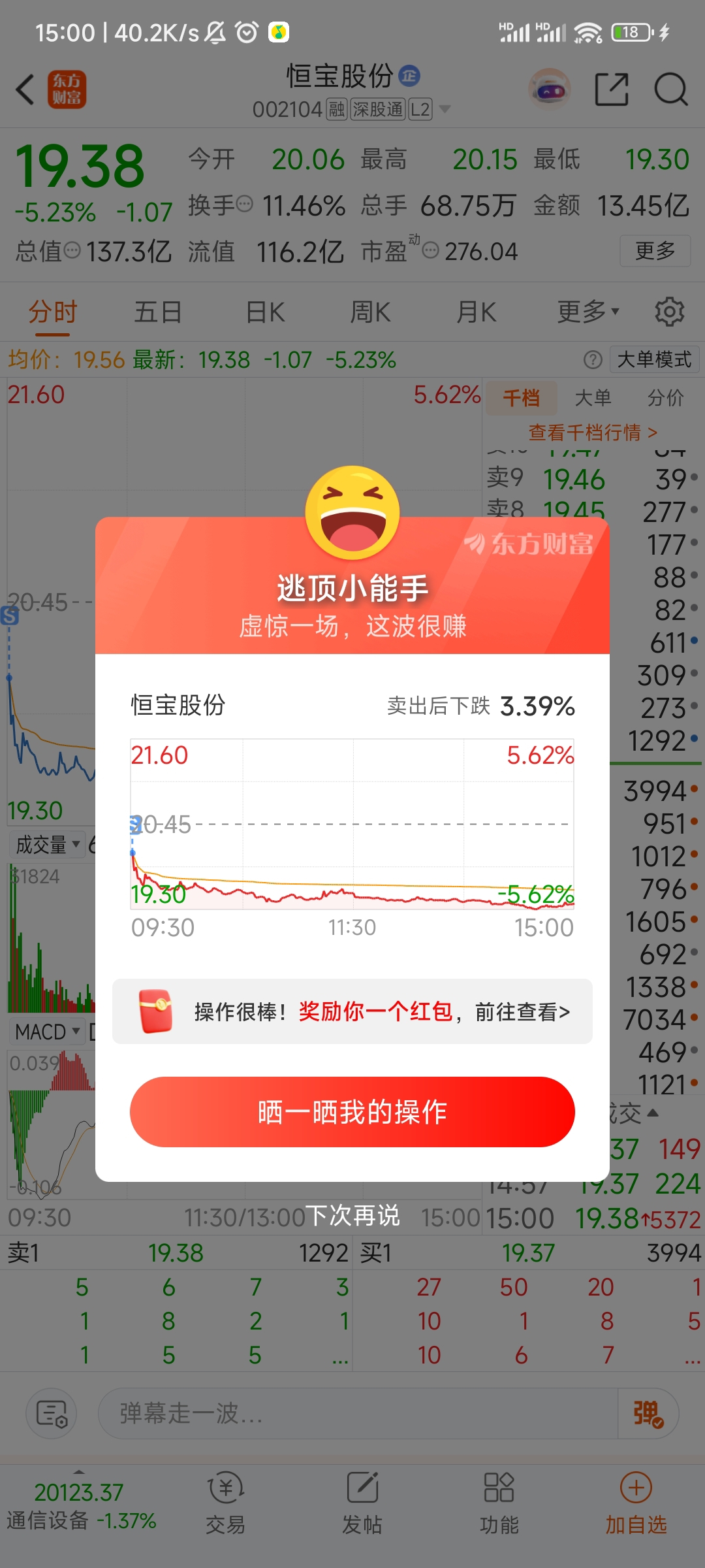 $恒宝股份(SZ002104)$ 一点赚钱机会都不给