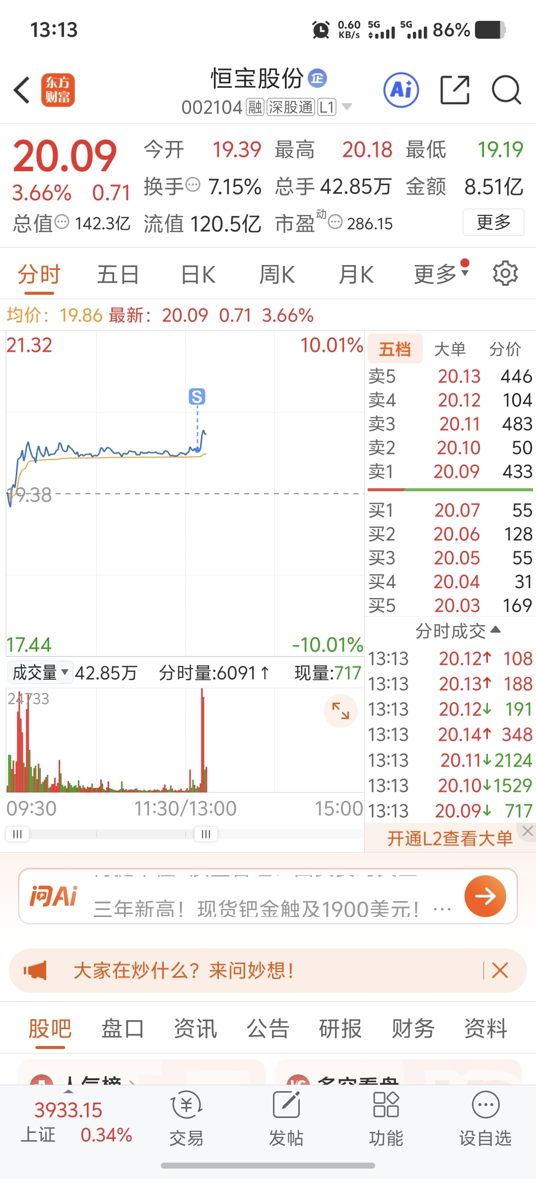 股份(SZ002104)$ 直接无语了,难道就瞅着我这三瓜两枣的