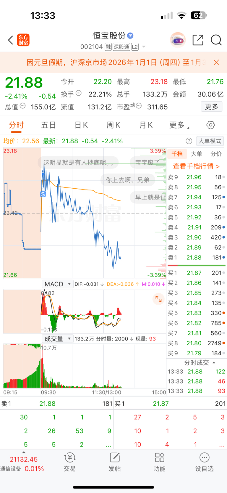 温馨提示: 1.根据《证券法》规定,禁止编造、传播虚假信息或者误导性信息,扰乱证券市场;2.用户在本社区发表的所有资料、言论等仅代表个人观点,与本网站立场无关,不对您构成任何投资建议。用户应基于自己的独立判断,自行决定证券投资并承担相应风险。《东方财富社区管理规定》