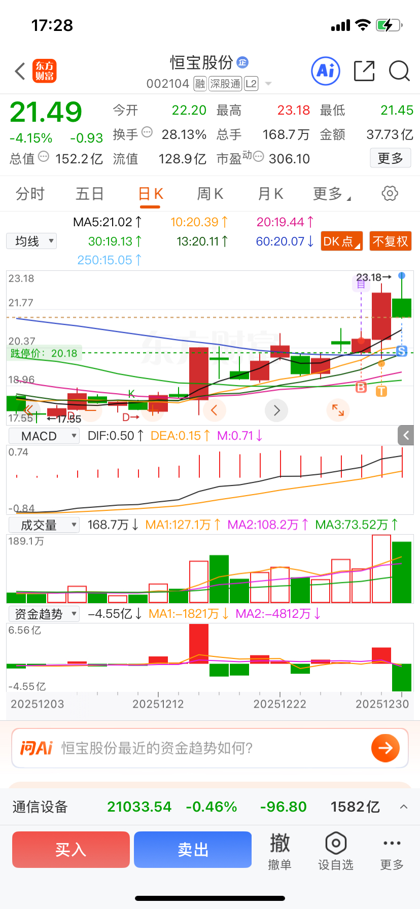 $恒宝股份(SZ002104)$ 最好的一次操作