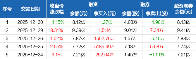 恒宝股份:融资净偿还1.27亿元,融资余额8.12亿元(12-30)