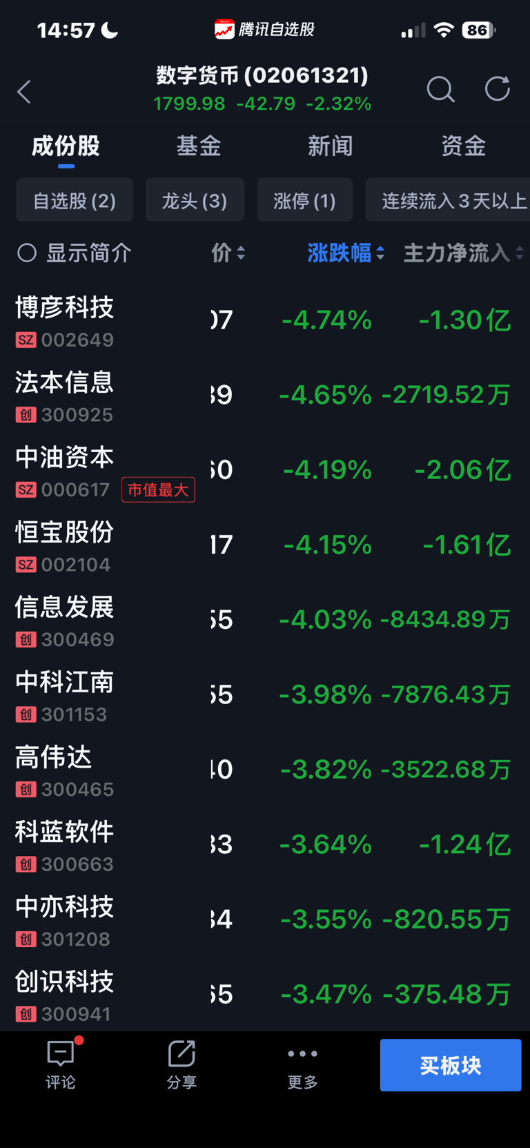 $恒宝股份(SZ002104)$ 流出快两个亿,明天继续跌3到5个点