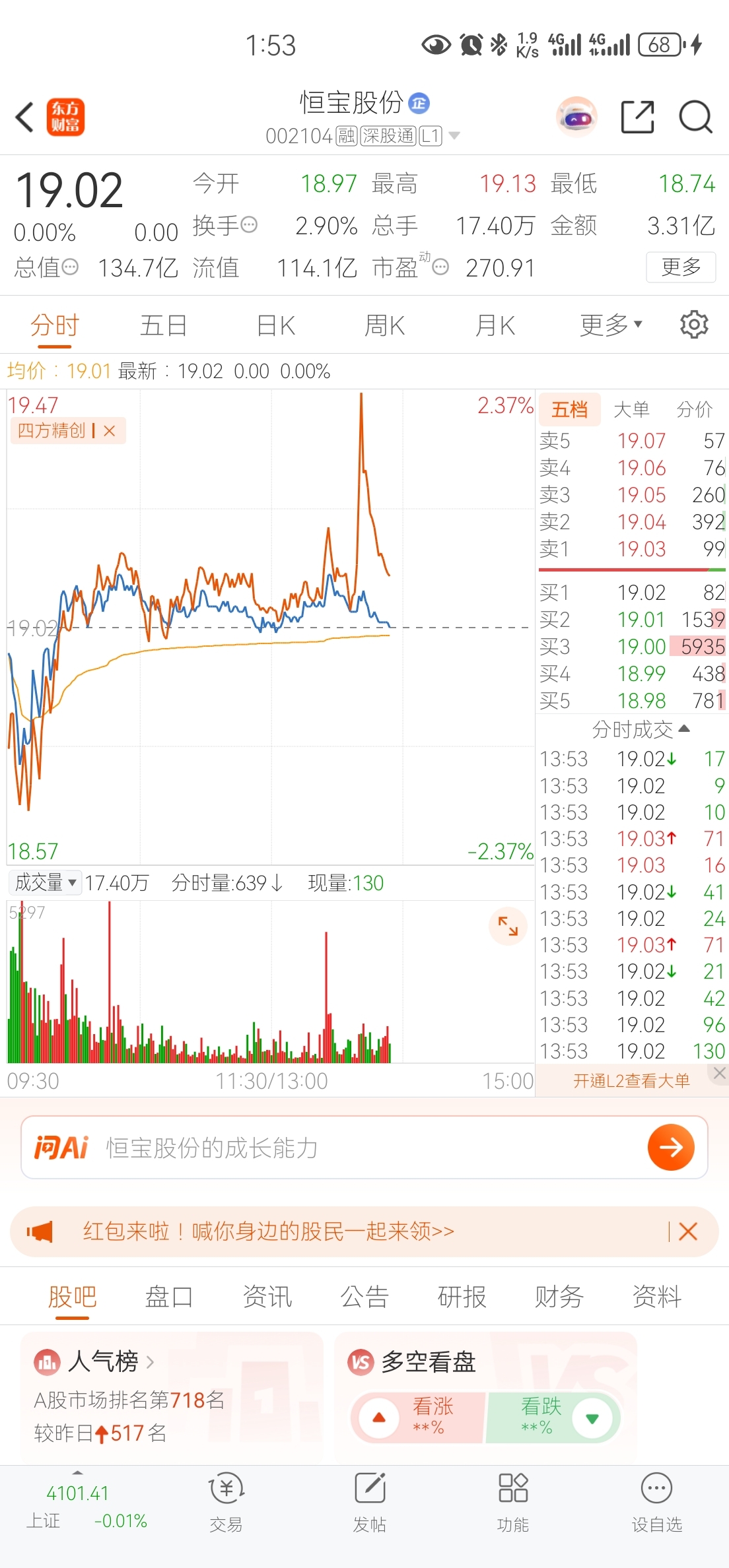 $恒宝股份(SZ002104)$ 你爹拉升你没有,你爹,你比他更快。主力早日