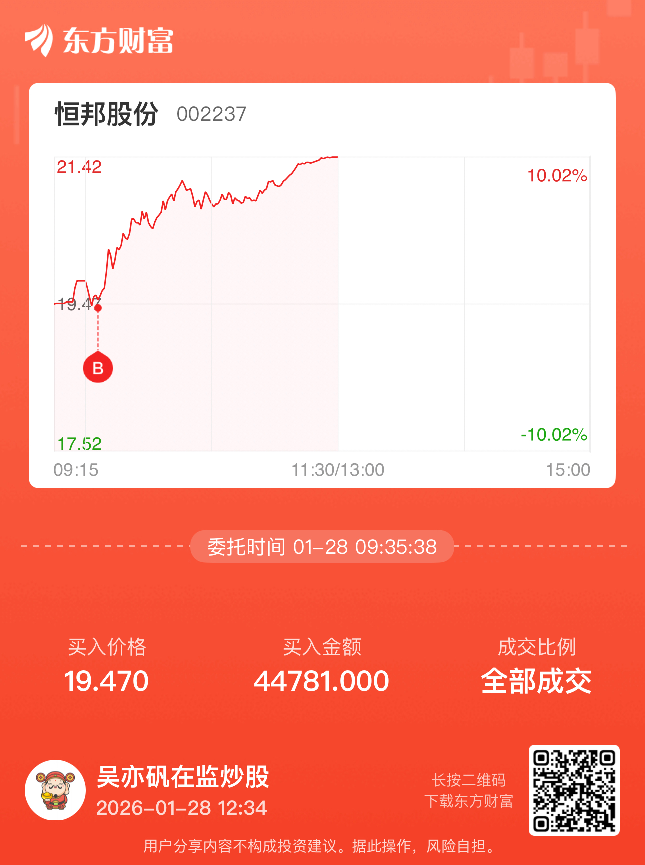 昨天晚上本来挂单5万买恒宝股份的,输入法给我打错了,迷迷糊糊的买了恒邦股份