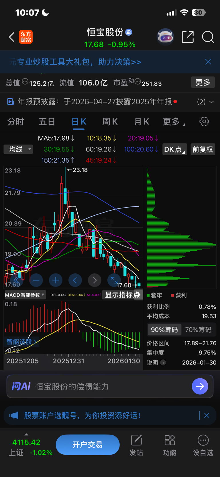 $恒宝股份(SZ002104)$ 打开我的帖子/看看我说的对还是托说的对,还要继续跌,上方筹码至少要全割肉才能涨,你不卖就天天跌