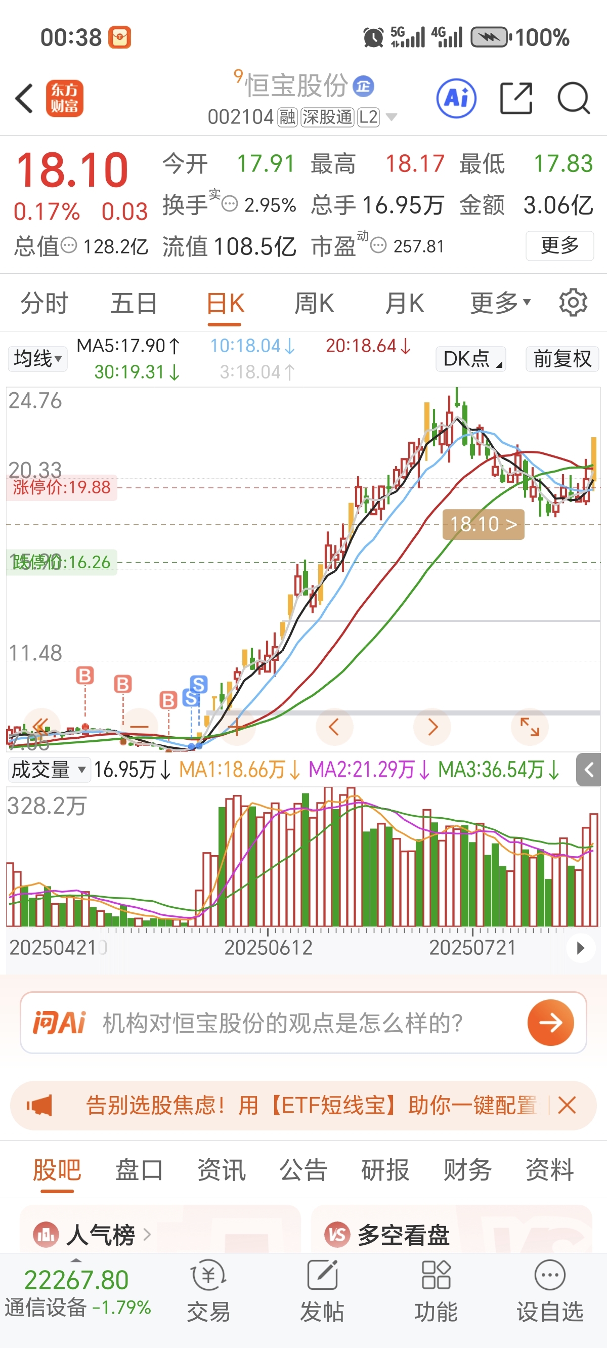 温馨提示: 1.根据《证券法》规定,禁止编造、传播虚假信息或者误导性信息,扰乱证券市场;2.用户在本社区发表的所有资料、言论等仅代表个人观点,与本网站立场无关,不对您构成任何投资建议。用户应基于自己的独立判断,自行决定证券投资并承担相应风险。《东方财富社区管理规定》