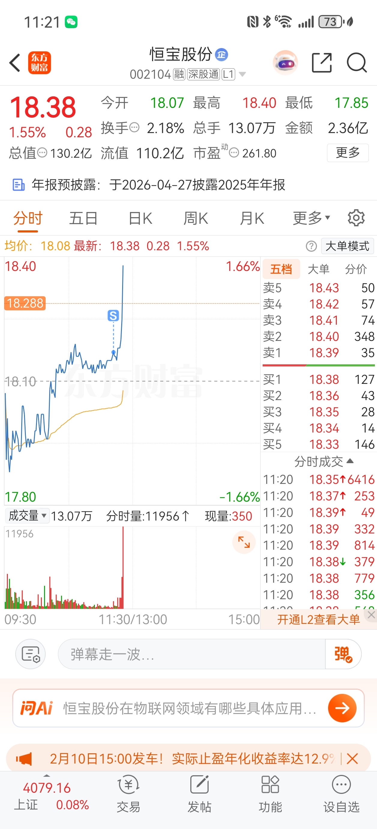 $恒宝股份(SZ002104)$ 一卖就拉