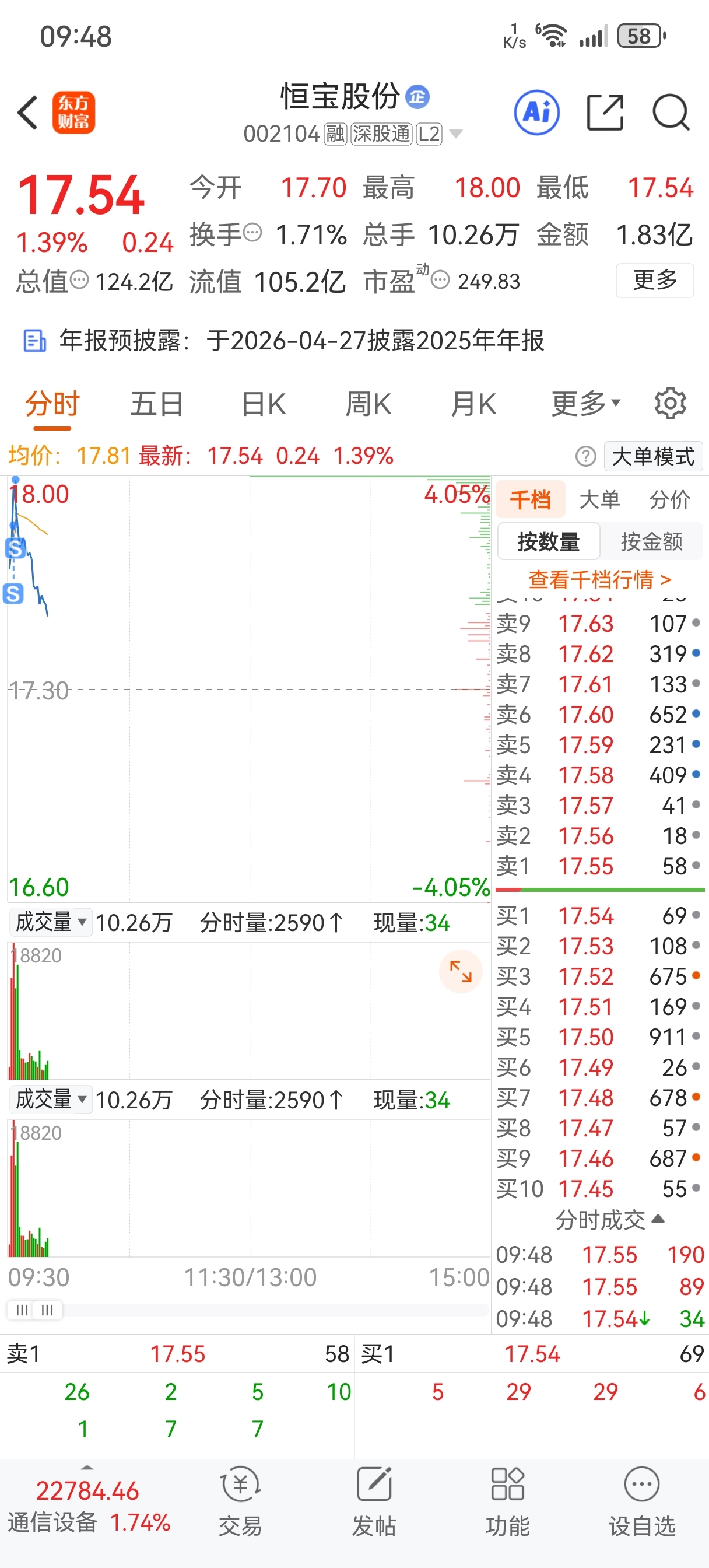 $恒宝股份(SZ002104)$ 清仓了,这个股不好,一直冲高回落