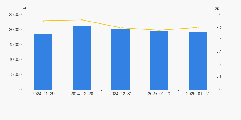 截至2025年1月27日,公司最新总股本为3.68亿股,其中流通股本为3.64亿股。户均持有流通股数量由上期的1.84万股上升至1.89万股,户均流通市值9.48万元。