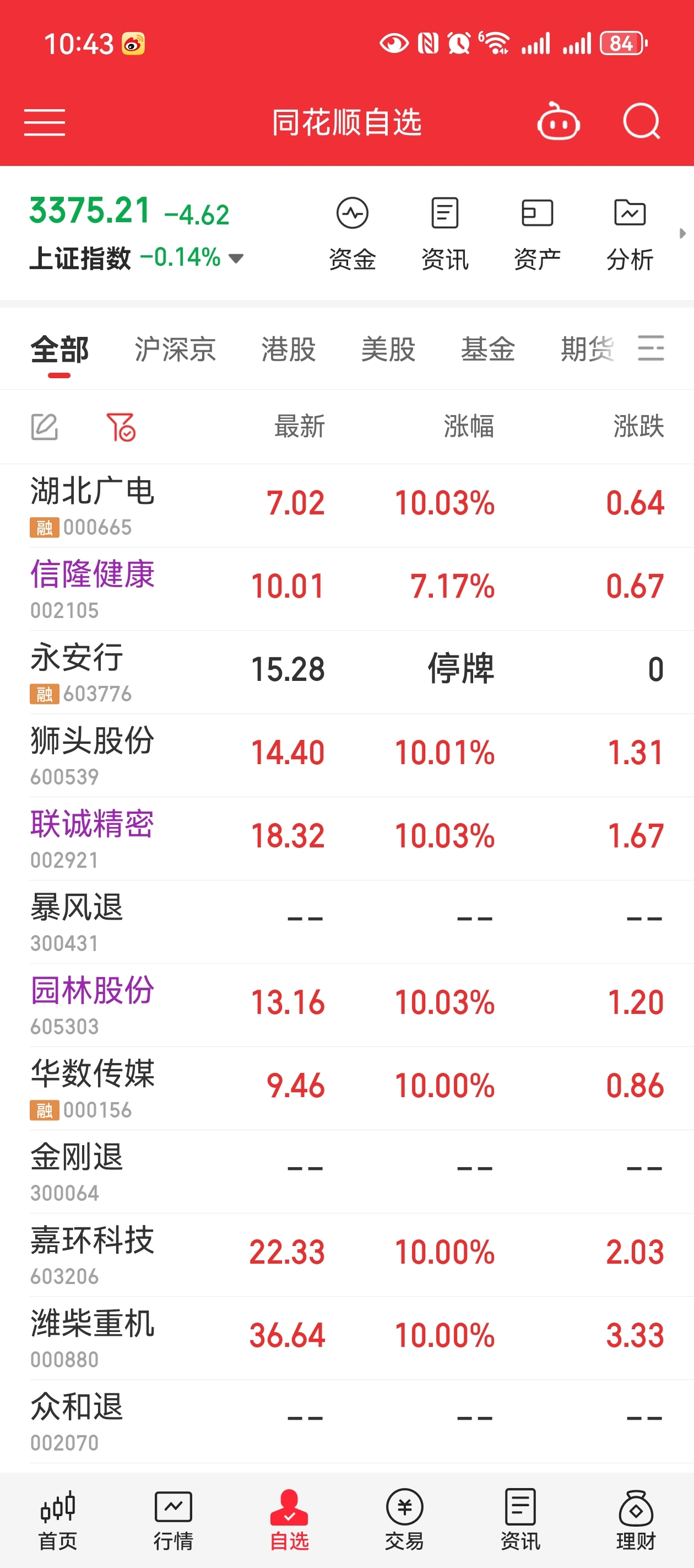 $信隆健康(SZ002105)$ 3月12日9点28分系统选股:1. 单点5天5板湖北广电一字躺赢。2. 3板狮头股份 pk 联诚精密,2选1。3. 4板园林股份。4. 单点6天6板信隆健康T。把哥提示的股(见图)先加入自选股,留强去弱,等回封买点。哥每天9点26-28分单点1只股。
