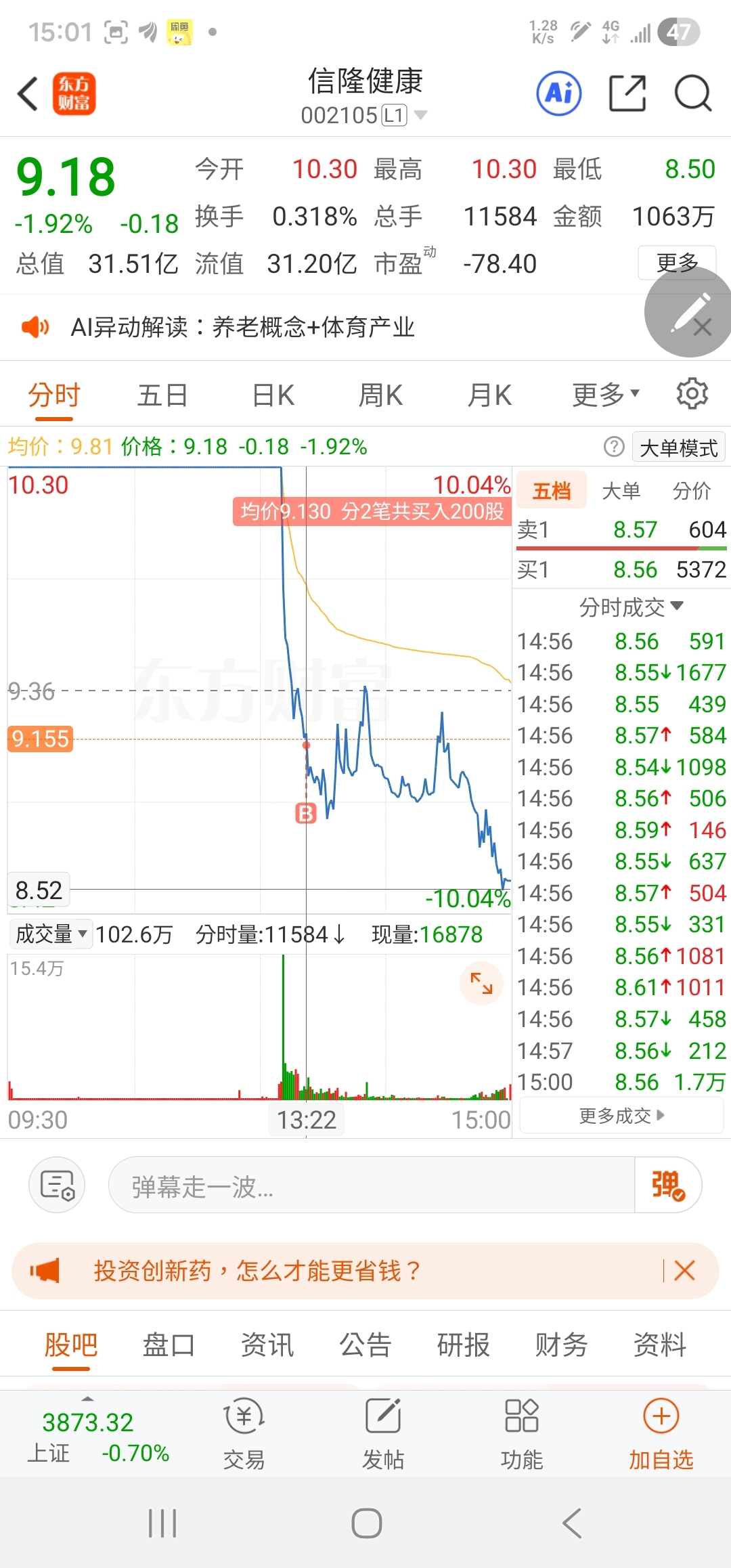 $信隆健康(SZ002105)$ 亏钱了,亏了100块呀。
