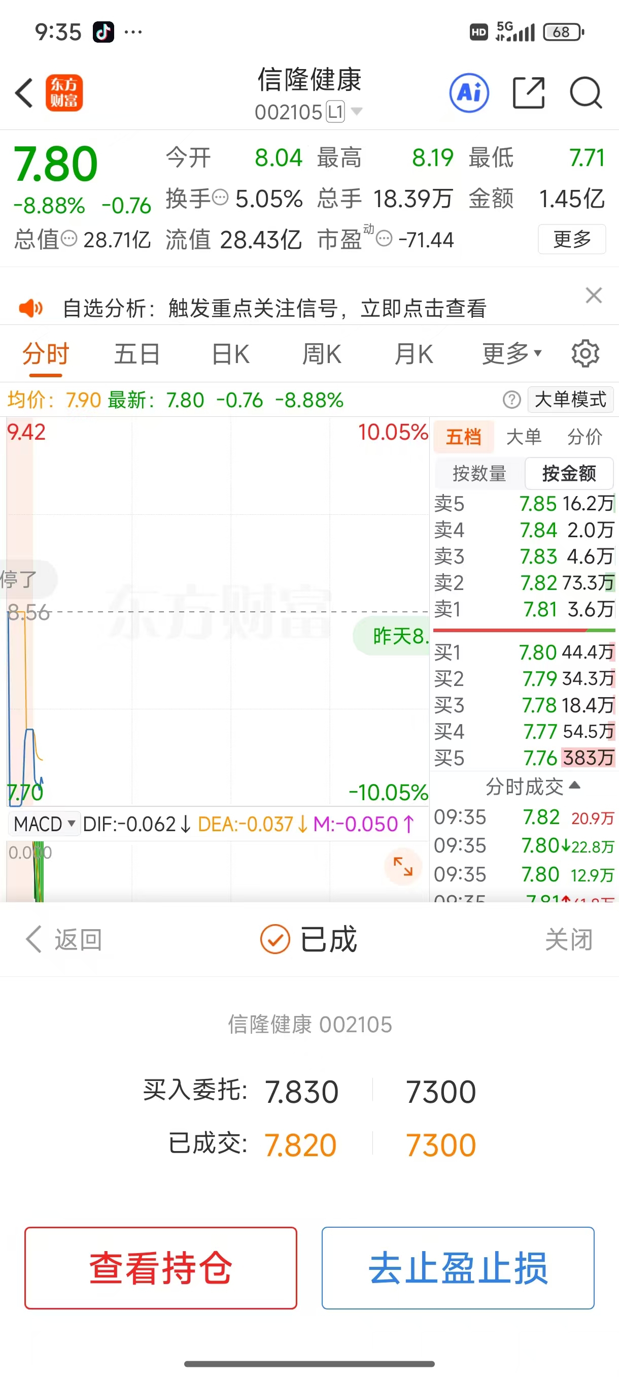$信隆健康(SZ002105)$ 来吧,小试牛刀!