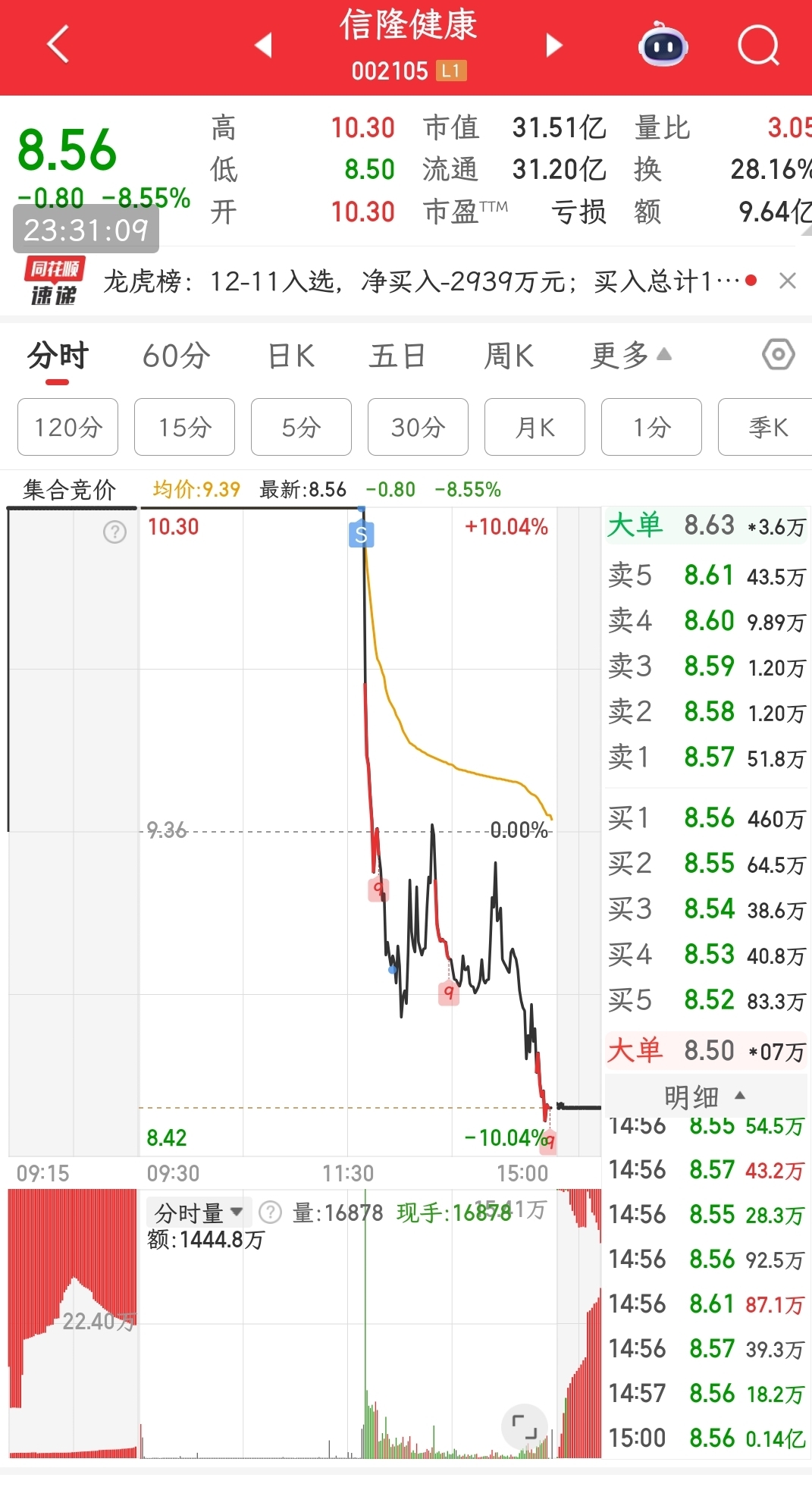 $信隆健康(SZ002105)$ 就感觉是三板斧的票,还好昨天水下没报幻想,全清了。分两次出完了。休息几天再来