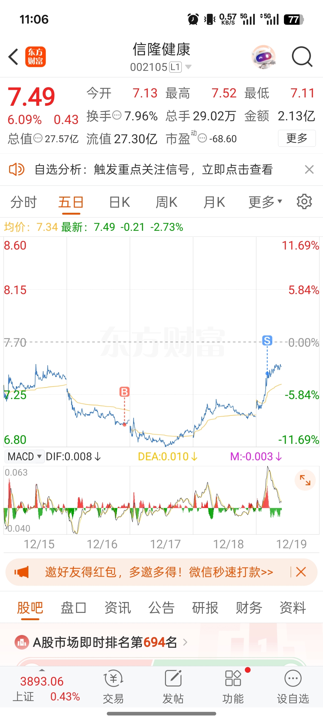 $信隆健康(SZ002105)$ 小赚几次洗脚的钱,用了再来提