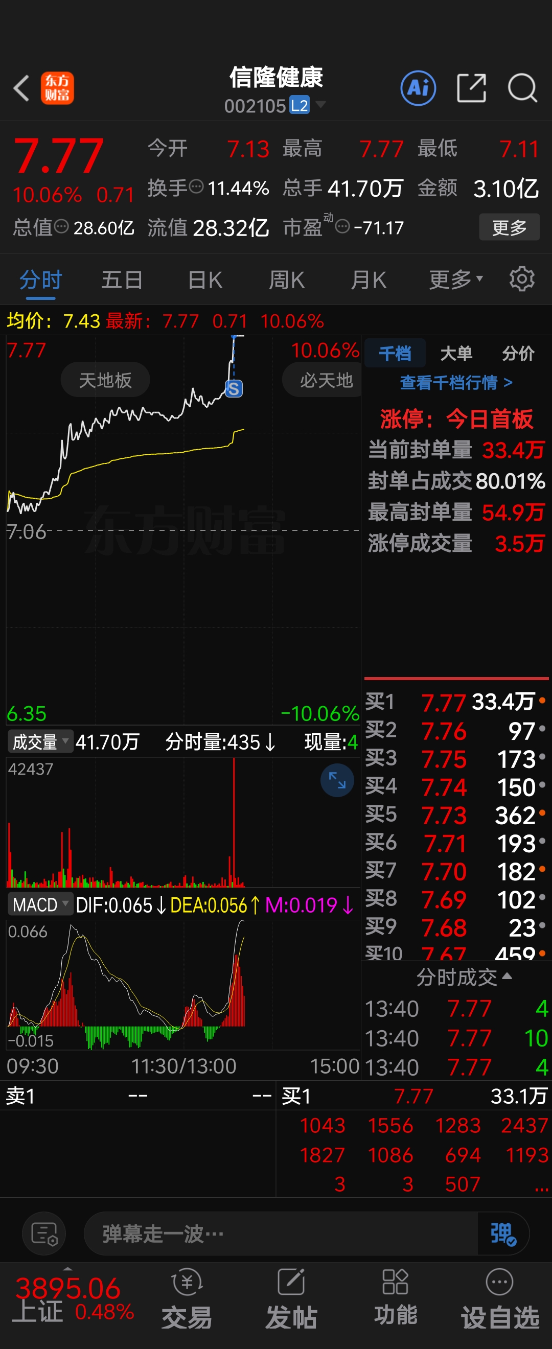 $信隆健康(SZ002105)$ 昨天买在最高点,今天涨停价走了,9个点知足了,祝留下的老铁们发财