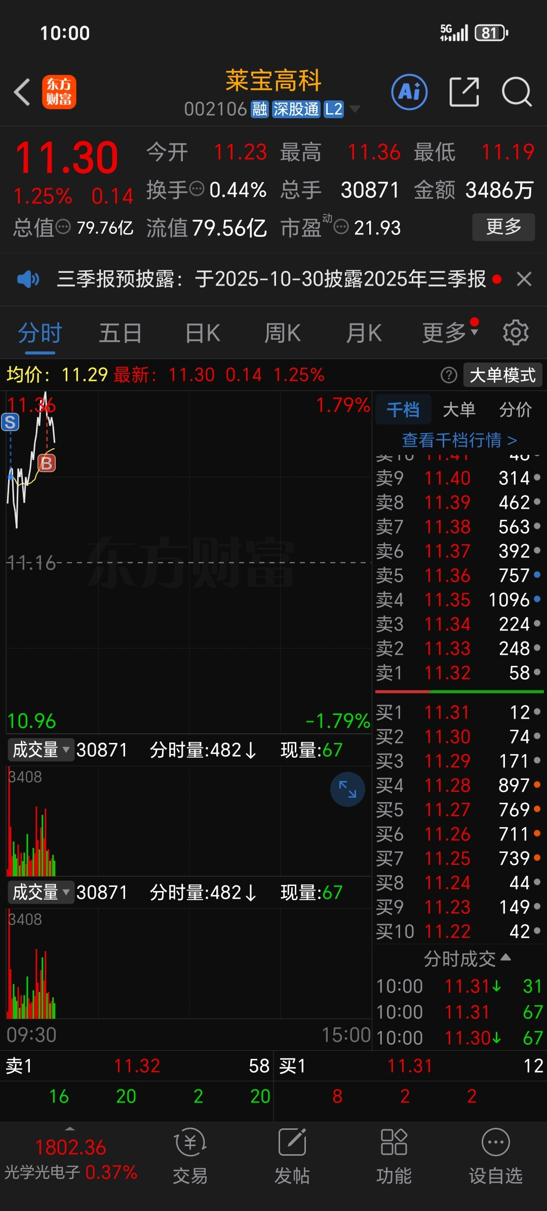 $莱宝高科(SZ002106)$ 终于搞了把T