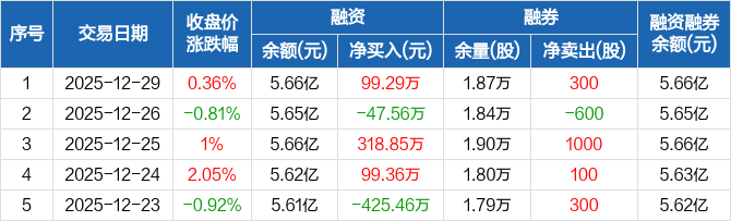 莱宝高科:融资净买入99.29万元,融资余额5.66亿元(12-29)