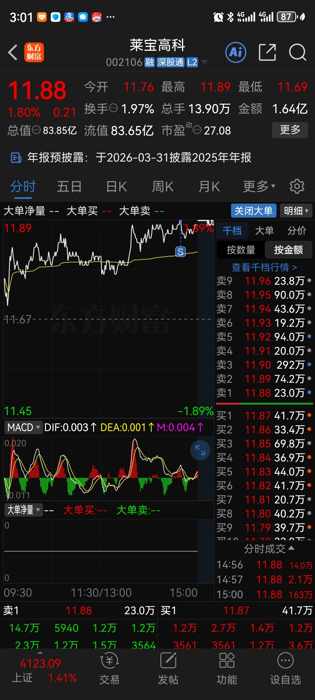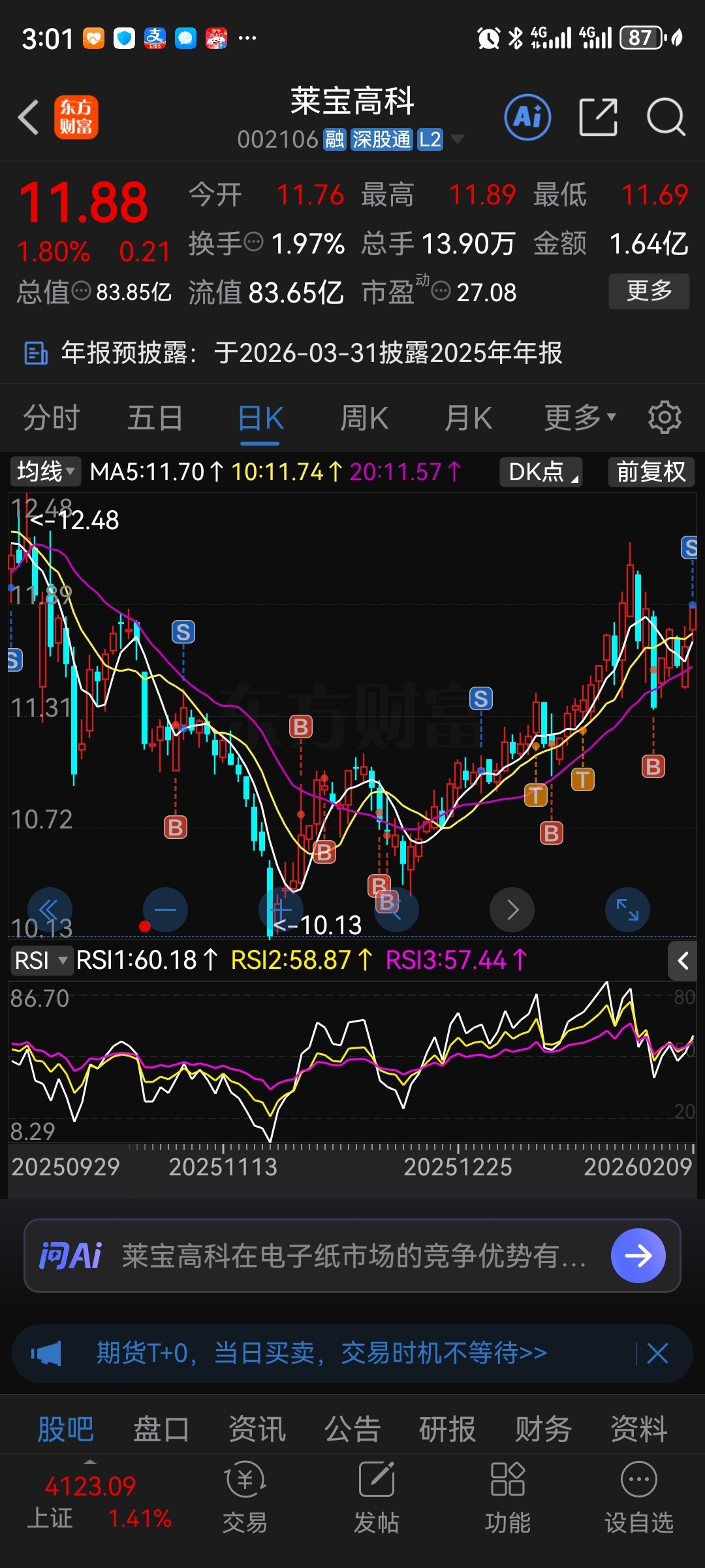 $莱宝高科(SZ002106)$ 隔日T,问题不大