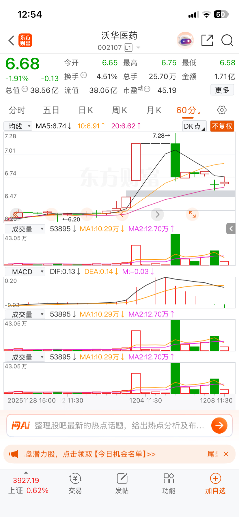 $沃华医药(SZ002107)$ 从分时线来看 刚开始跌