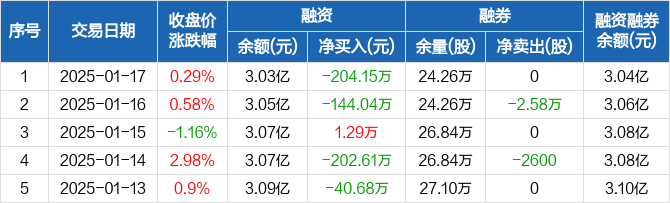沧州明珠:融资净偿还204.15万元,融资余额3.03亿元(01-17)