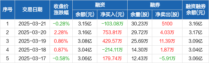 沧州明珠:融资净偿还103.08万元,融资余额3.15亿元(03-21)