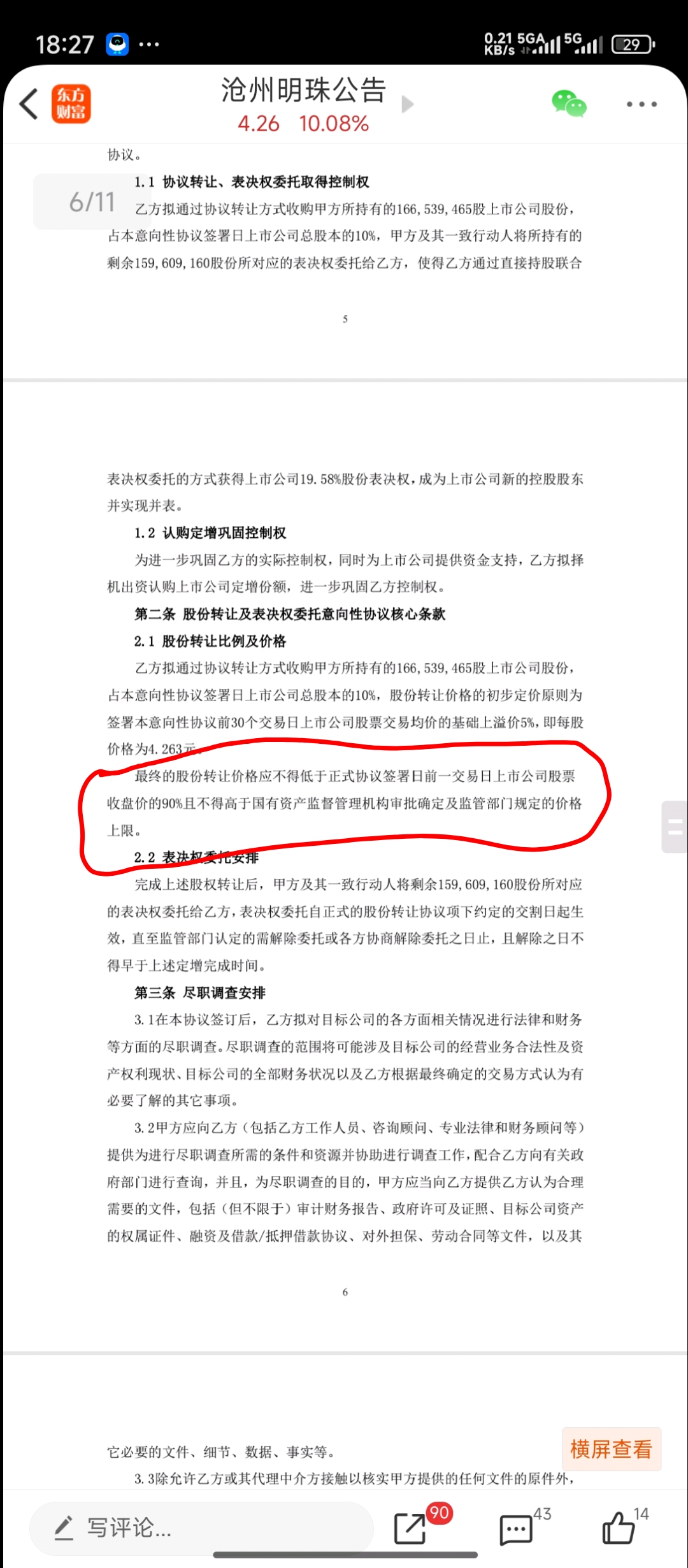 $沧州明珠(SZ002108)$ 公告上的协议价和最后成交价不一样。有上下限