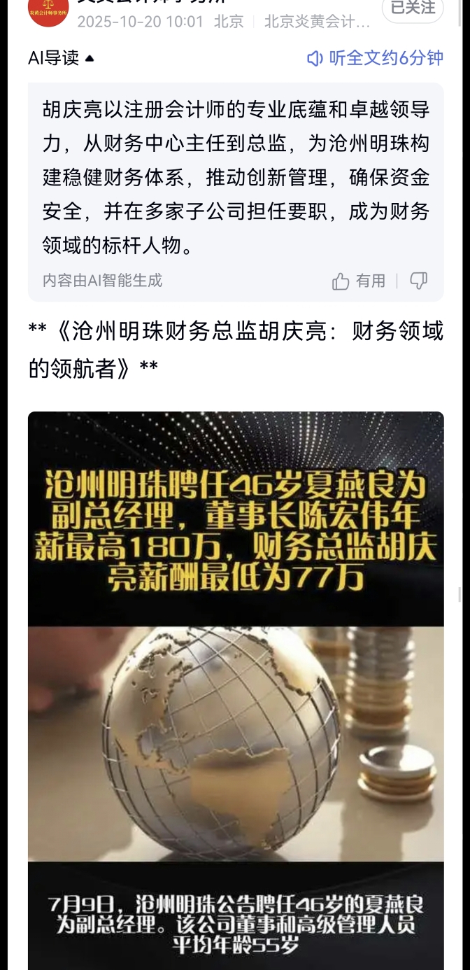 $沧州明珠(SZ002108)$ 小胡总这么厉害
