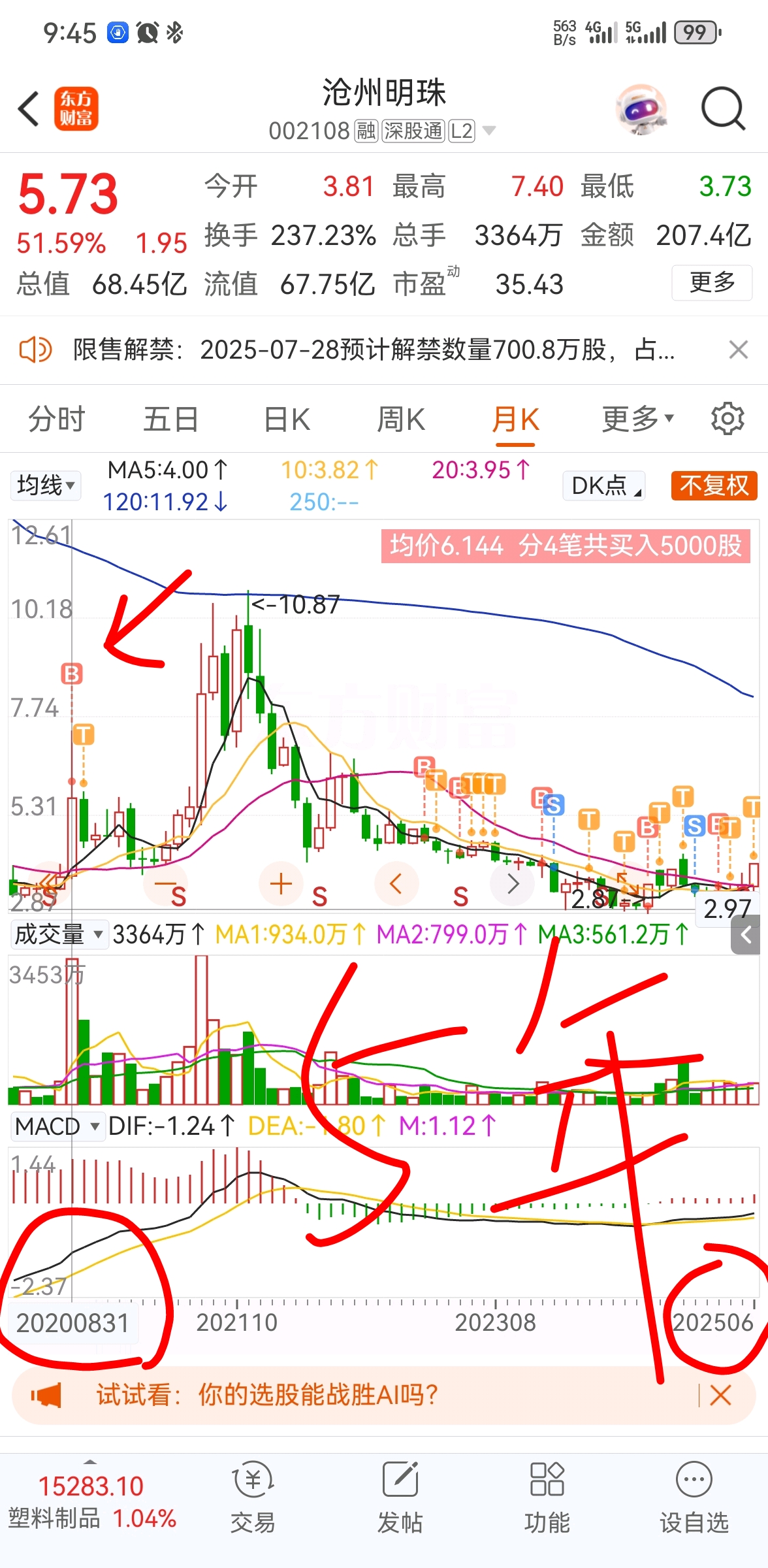 $沧州明珠(SZ002108)$ 历时五年!就是不割肉!今天,全仓清仓,发完这最后一个帖子,删自选!!!